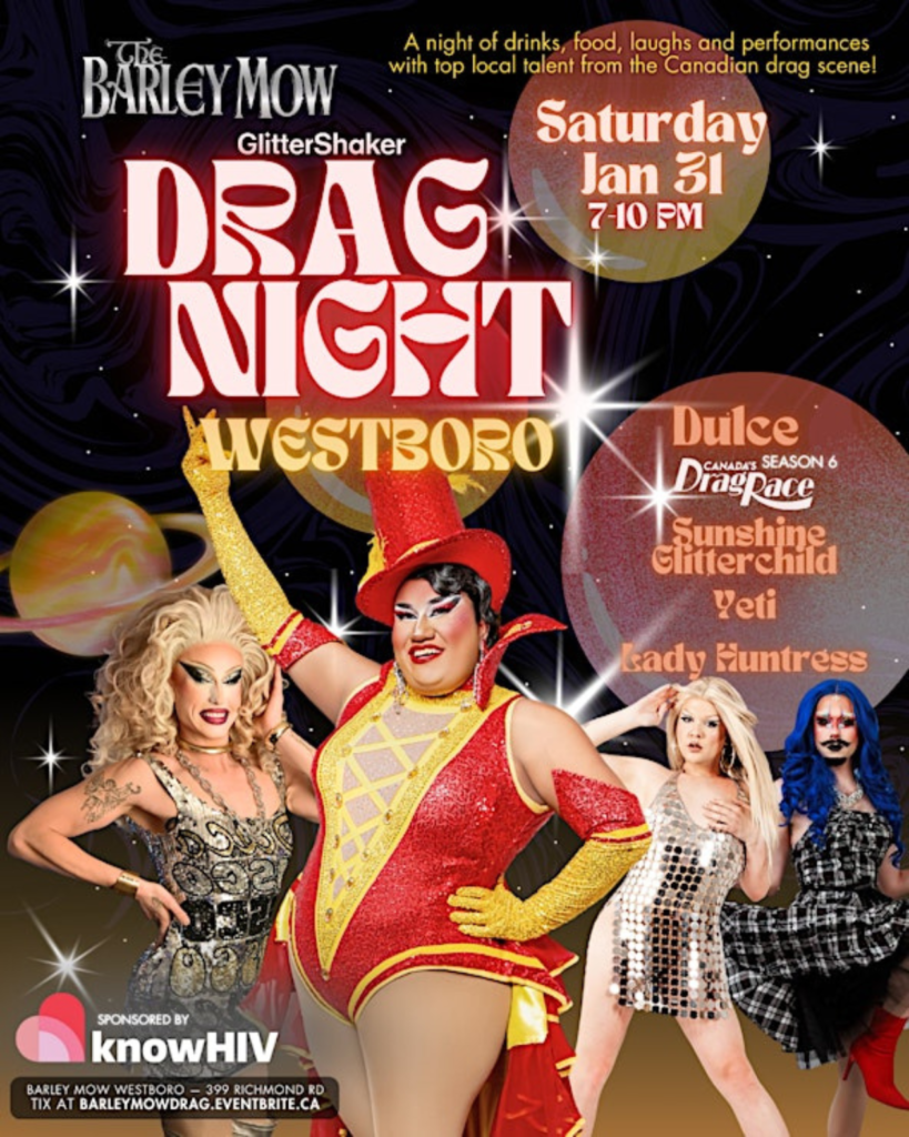 We’re back at The Barley Mow Westboro! Join us for another high-energy drag night hosted by Ottawa’s roller-skating diva Sunshine Glitterchild and Canada’s Drag Race Season 6‘s Dulce! They’ll be joined by the stunning Yeti and newcomer to the Ottawa drag scene Lady Huntress.