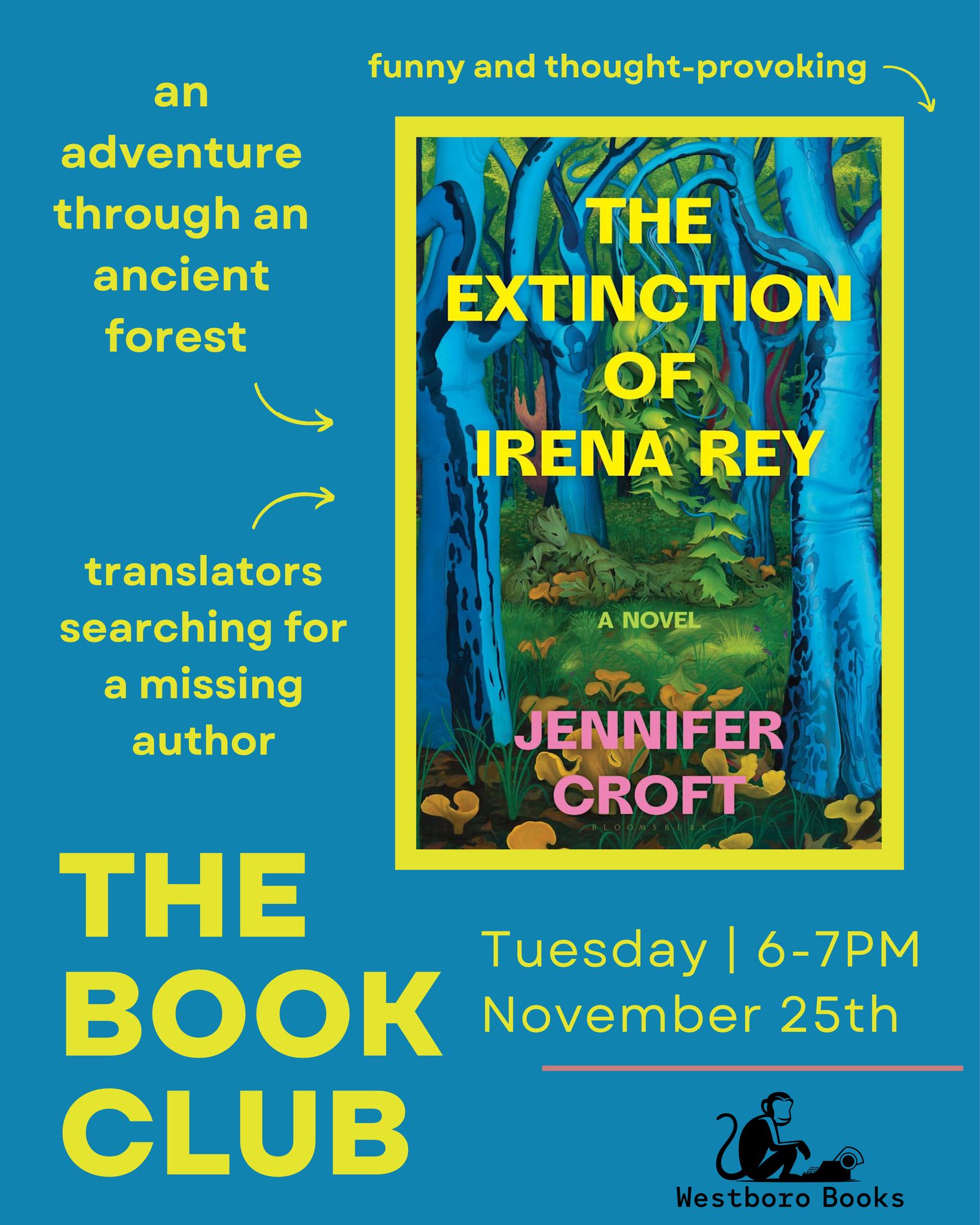 Our November book club read will be “The Extinction of Irena Rey” by Jennifer Croft!