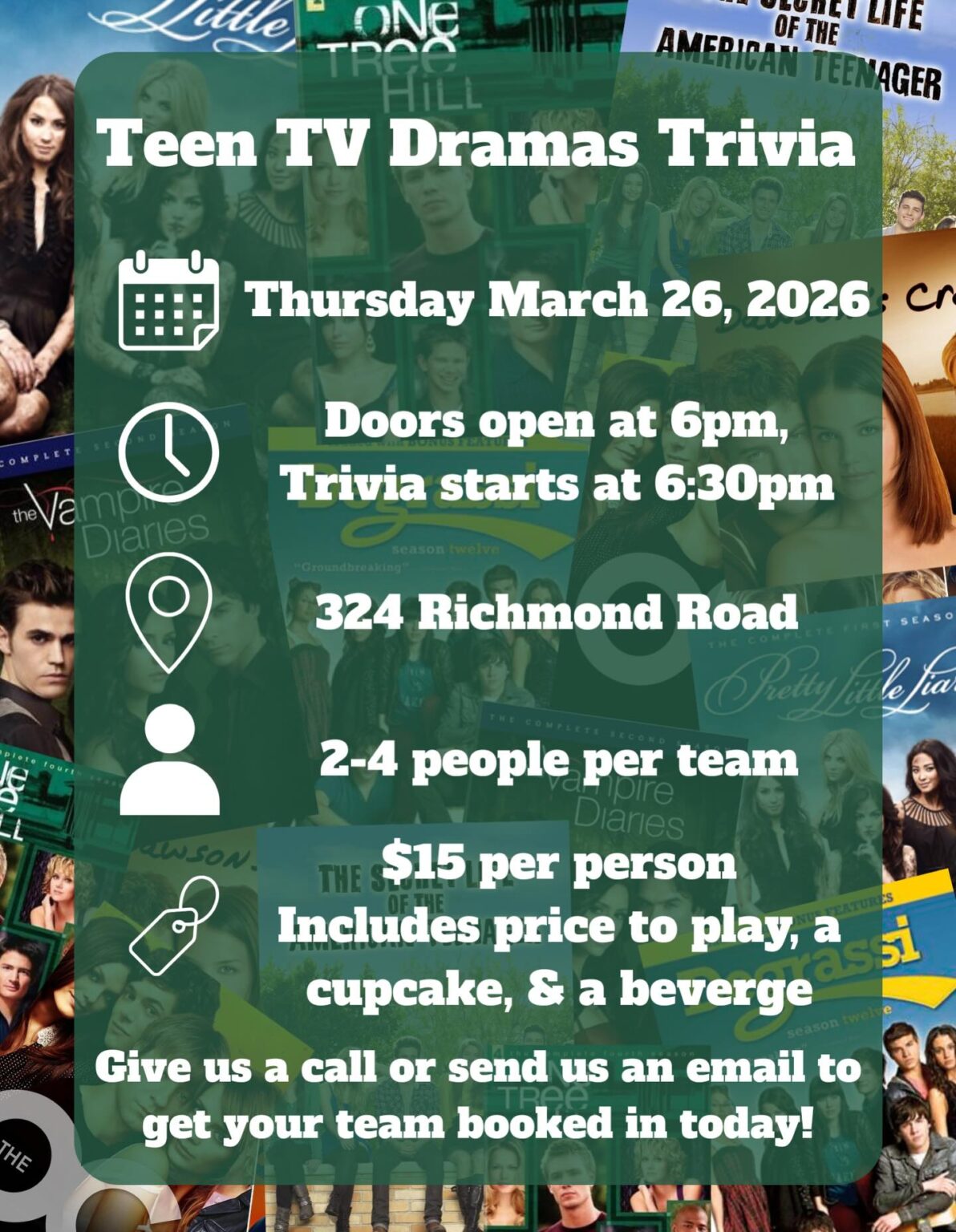 You’re loving the trivia nights, and so are we! Join us for our Teen TV Dramas-themed trivia this month. Just give us a call to get your team booked in! Bring your team and see who’s got what it takes to win!