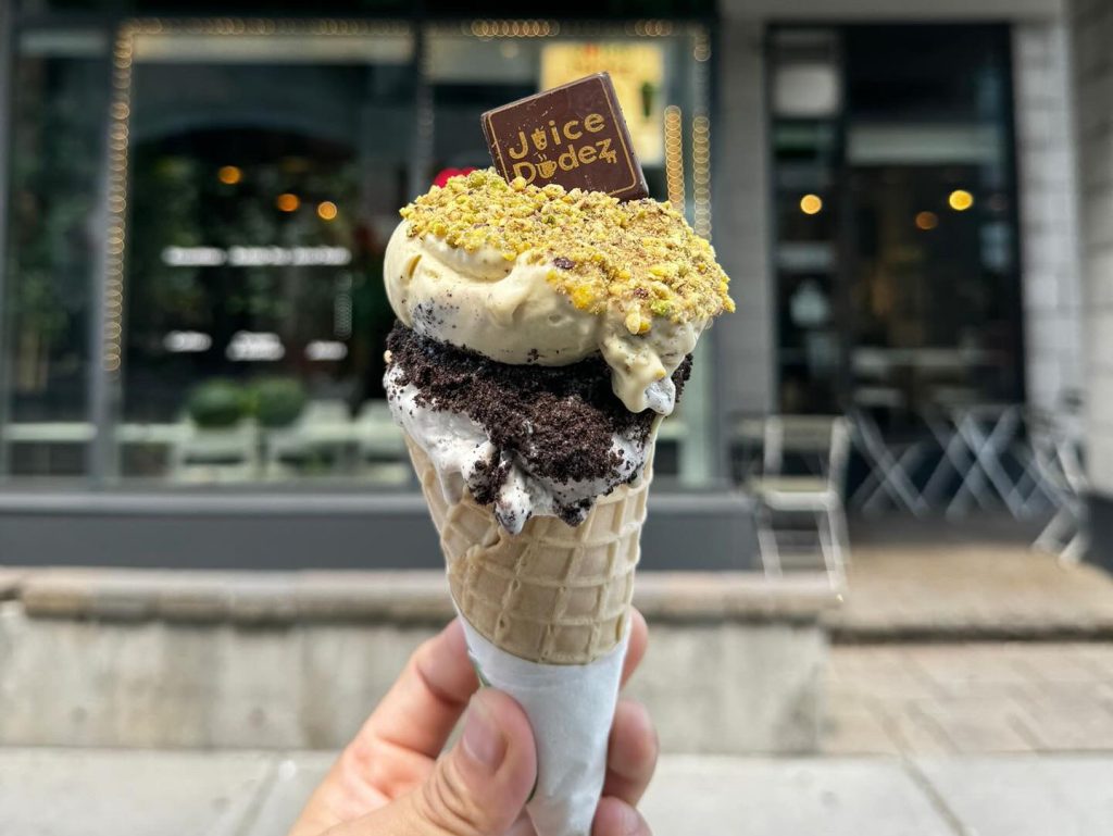 Juice Dudez has a wide variety of handmade gelatos. They also have a great selection of made fresh-to-order cool blended drinks, including smoothies and fruit slush. Add in extras to match your taste!