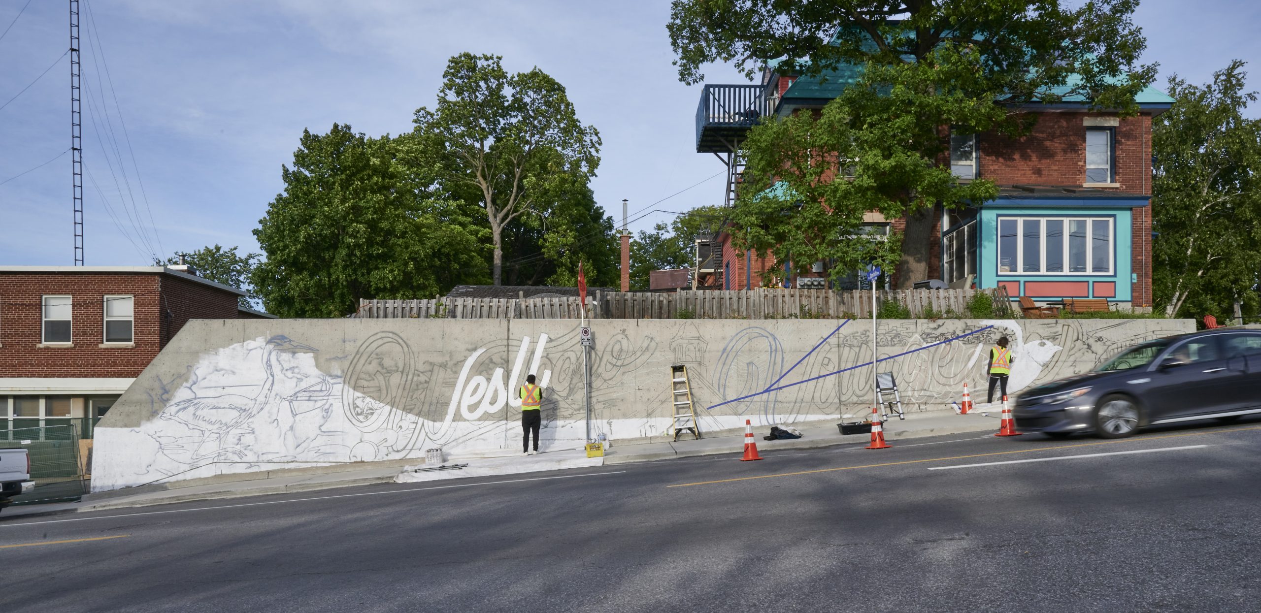 Late in the summer of 2020, we began on a new entrance to Westboro Village on Churchill Ave. Since 1997, the beautiful artwork of Shaun McInnis has filled the retaining wall on Churchill Ave just north of Byron. Shaun McInnis completed a number of murals in and around Westboro Village, and this one of Winston Churchill was one of the most prominent.