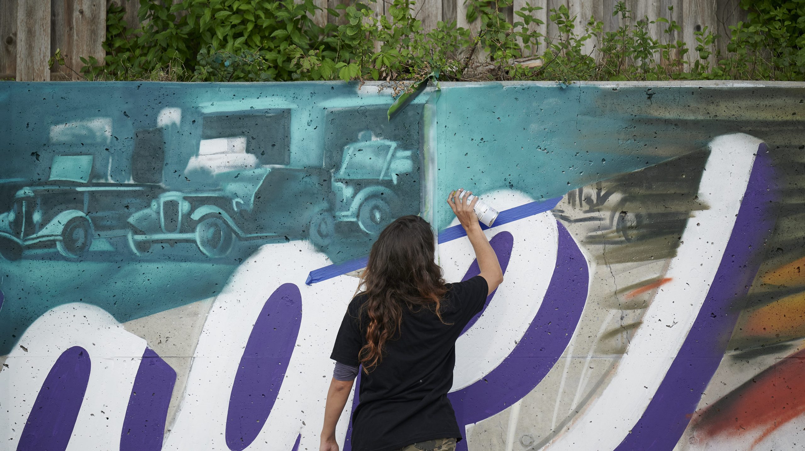 With the generous support of the City of Ottawa we were able to replace the mural with one filled with community content. Style Over Status completed the project in late fall and the mural has many representations of the Westboro Community. From the waves and heron at Westboro Beach, to the old Nepean City Hall and the transportation along Byron, there is much to see and be found in the new mural. The mural shows the evolution of Westboro with many nods to the history of the neighborhood.