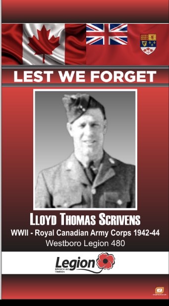 Our Family and those who knew him will never forget his fierce determination to help win a war so future generations could live a better life. We are very proud to be able to honour his memory by displaying his Veterans Banner with the help of the Westboro Legion 480 and the Westboro BIA.